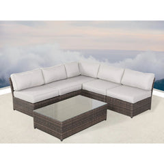 6 Seat Patio Wicker Sectional With Cushions - Gray Mix