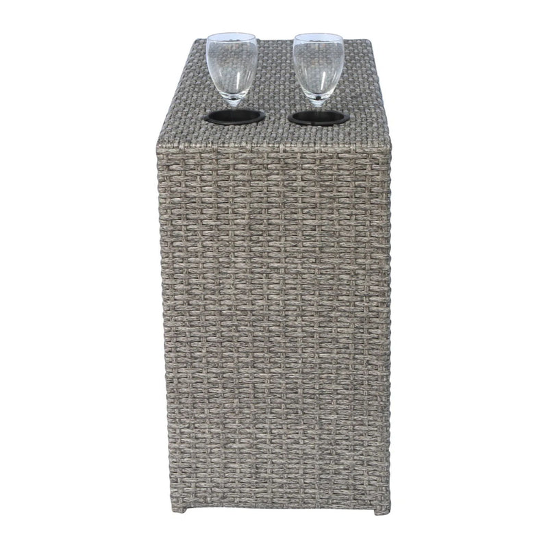 2 Person Wicker Seating Set With Cushions And Glass Top Table - Grey Mix