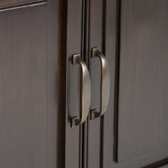 - Traditional design Includes vintage raised panel doors and drawers, notched legs, bronze decorative hardware and a style reminiscent of the historic British Colonial style