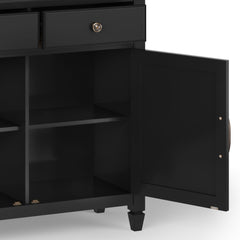 - Features 2 drawers for keys, gloves, hats and other items and 2 doors with large interior storage and interior adjustable shelves