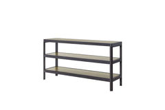 - Design Features: The table incorporates metal insets on all three shelves, adding an industrial touch to its softer modern design elements.