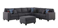 Cooper - 7 Piece Reversible L-Shape Sectional Sofa & Comfort Ottoman, And Cupholder - Dark Gray