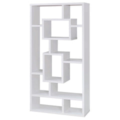 Elevate a den or home office with clean lines and a contemporary design. The sharp, stylish silhouette of this bookcase exudes artistic appeal. With ten shelves of varying shapes and sizes, it's the perfect combination of fashion and functionality. Constructed from steel, particle board, and engineered veneer, it's a sturdy and durable option. Perfect as a decorative display or simple storage, this shelf upgrades a room with chic, classy convenience.