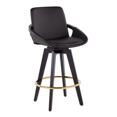 - Contemporary Design: The Cosmo Counter Stool by LumiSource features a modern aesthetic, combining a sleek faux leather seat with a stylish wood armrest and frame. Its design is further enhanced by a chic gold footrest, creating a sophisticated look for any space.