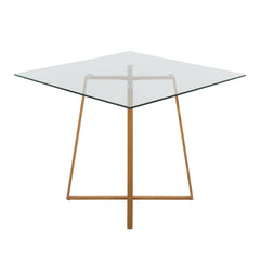 Cosmo - Contemporary Square Dining Table With Natural Legs - Clear