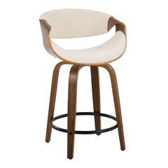 Curvini Mid-Century Modern Fixed Height Counter Stool With Swivel (Set of 2) - Walnut / Cream