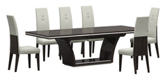Modern Extendable Dining Table D832 by Global United. D832 is a large and beautiful dining furniture collection, made in Dark Velvet Birch High Gloss lacquer. Dining Table features pedestal base and is offered with extension. Chairs feature velvet upholstered seat and back that is super easy to clean. D832 dining set also has matching buffet, mirror, and 2-Door Curio Cabinet. This collection is designed in Italy, the modern silhouette fits in well with the rest of the modern furnishings. All pieces can be sold separately.