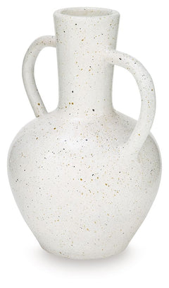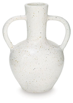 This eye-catching vase, with its delicate speckles and graceful handles, is the perfect statement piece to elevate your tablescape. Crafted from glazed terra cotta, it serves as a magnificent vessel for your favorite dried or faux florals. This piece stands beautifully on its own, or as part of a splendidly stylish trio with the coordinating vase and bowl (sold separately).