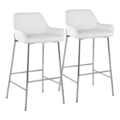 Daniella - Contemporary, Fixed Height Bar Stool (Set of 2) - Chrome / White