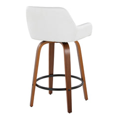 Daniella - Contemporary Fixed Height Counter Stool With Swivel With Round Footrest (Set of 2) - Walnut / White