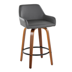 Daniella - Contemporary Fixed Height Counter Stool With Swivel With Round Footrest (Set of 2) - Walnut / Gray