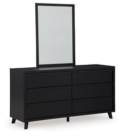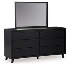 Sophisticated style for the savvy shopper. This dresser with mirror prioritizes affordable, on-trend design. Its subtle replicated texture recalls the natural beauty of wood, highlighting its clean-lined styling. And a matte black finish savvily suits different approaches to modern aesthetics. Mix and match with light and bright hues, or pair with other dark tones for a moody look.