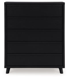 Sophisticated style for the savvy shopper. This chest of drawers prioritizes affordable, on-trend design. Its subtle replicated texture recalls the natural beauty of wood, highlighting the slatted styling. And a matte black finish savvily suits different approaches to modern aesthetics. Mix and match with light and bright hues, or pair with other dark tones for a moody look.