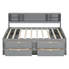 Full Size Daybed With 2 Bedside Cabinets, Upper Shelves And 4 Drawers - Gray