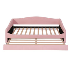 Twin Size Upholstered Daybed With Light And Trundle - Pink