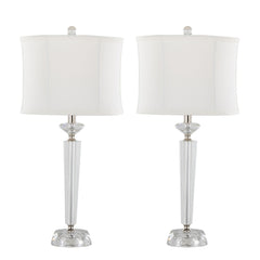 Diamond - Torch Contemporary Crystal Table Lamp (Set of 2) - Clear / Off White / Polished Nickel
