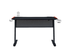 Overwhelm your opponent with this cozy yet cool gaming table. Sturdy metal frame with ergonomic design maximizes the comfort when you were using the computer. Red and black color scheme exudes a strong and powerful masculine energy, supporting your passion for a complete game play. All designed for entertainment, the game table boasts innovative features such as cup holder, controller racks, headset rack, built-in USB ports and outlets, with LED light enhancing visual enjoyment.