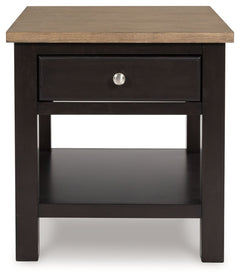When you’re styling your living room, convenience is key. With this end table, casual flair meets can’t-miss function. Tired of tracking down lost remotes? A handy storage drawer keeps your entertainment essentials close. This fashionably functional piece pairs a dark chocolate brown with a light wood tone, complementing a variety of color palettes.