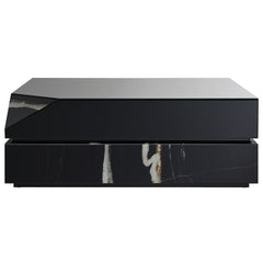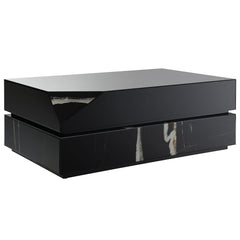 This Drisana exudes modern elegance with its rectangular coffee and end tables. Featuring a sleek black mirrored surface and a sophisticated marble grain design, these tables bring a touch of luxury to any living space. The unique combination of reflective surfaces and natural stone patterns enhances the aesthetic appeal, making the Drisana collection a perfect blend of contemporary style and timeless beauty.