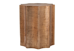 - Design and Finish: This drum table features a stylish scalloped design with a hammered texture, finished in an antique metal. It adds an eye-catching boho glamour to any living room or bedroom setting.