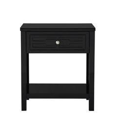 Dylan - Wooden End Side Table Nightstand With Glass Top And Drawer - Black