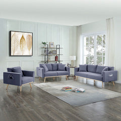 Easton - Linen Fabric Sofa Loveseat Chair Living Room Set With USB Charging Ports Pockets And Pillows (Set of 3) - Dark Gray