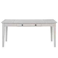 The Echo Rectangle Dining Table blends style, durability, and function. Crafted from solid Rubberwood and engineered woods, it offers strength and the charm of Oak veneers. A driftwood finish enhances the wood grain with pale gray and white wash tones for a warm look. Built-in storage includes a central drawer for flatware and lift-top compartments at both ends for linens or games. At 66" long, it seats six comfortably, making it perfect for intimate dinners or lively gatherings