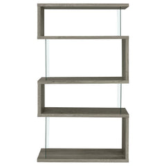 Emelle - 4-Shelf Glass Panel Bookshelf - Gray Driftwood