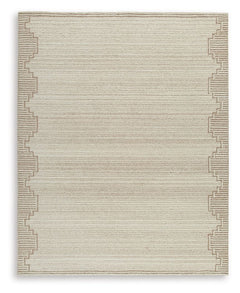 Dress up any floor with the tastefully approachable design of this rug. Its distinctive stepped border pattern, rendered in versatile neutrals, creates a subtly eye-catching look that brings modern elegance to any casual space. Crafted from wool with a generous pile, this rug doesn't just stun with its good looks—it also delivers an indulgent feel underfoot.