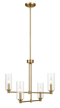 - Elegant Design: The Enigma Four Lights Chandelier features a sleek satin brass finish and clear ribbed glass design, adding a touch of sophistication and style to any room.