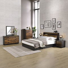 The focal point of any bedroom is a comfortable bed that invites you to unwind at the end of the day. The walnut & black finish create a perfect modern contrast and color scheme. The bed boasts a storage headboard with an open compartment for displaying decorative pieces. Adding more function to the bed, it offers a hidden storage base. Complete the look with the matching case goods that will help you stay organized.