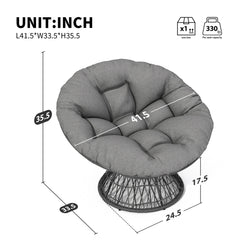 Ergonomic Wicker Chair With Cloud Thick Density Cushion, 3 Proof Cover High Capacity Iron Frame Fluid 360° Swivel - Gray