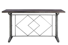 Transform a boring traditional dinning room into a industrial home bar that allow your friends to eat and drink to their heart's content. The Evangeline Counter Height Table employs a sense of industrial rawness in every detail, including distressed textures, metal structure, minimalistic design. The rectangular wooden table top is finished in a salvaged brown to form a weathered surface. Below the table top is a geometric metal base, creating a striking silhouette to makes a bold statement. Give your dining room an instant makeover with The Evangeline Counter Height Table.