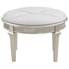 Evangeline - Upholstered Oval Vanity Stool Silver And Ivory - Silver Oak