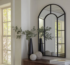 This mirror takes a classic wall accent and upgrades it with simple details. An arched design and paneled perimeter are framed with metal in a versatile black finish. Whether your room is casual or contemporary, this mirror effortlessly reflects the mood of your space.