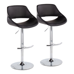 Fabrico - Contemporary Adjustable Bar Stool With Rounded T Footrest (Set of 2) - Chrome / Black