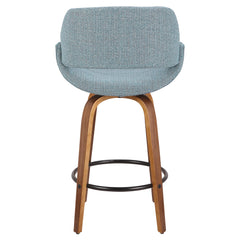 Fabrico - Mid-Century Modern Counter Stool - Walnut / Blue