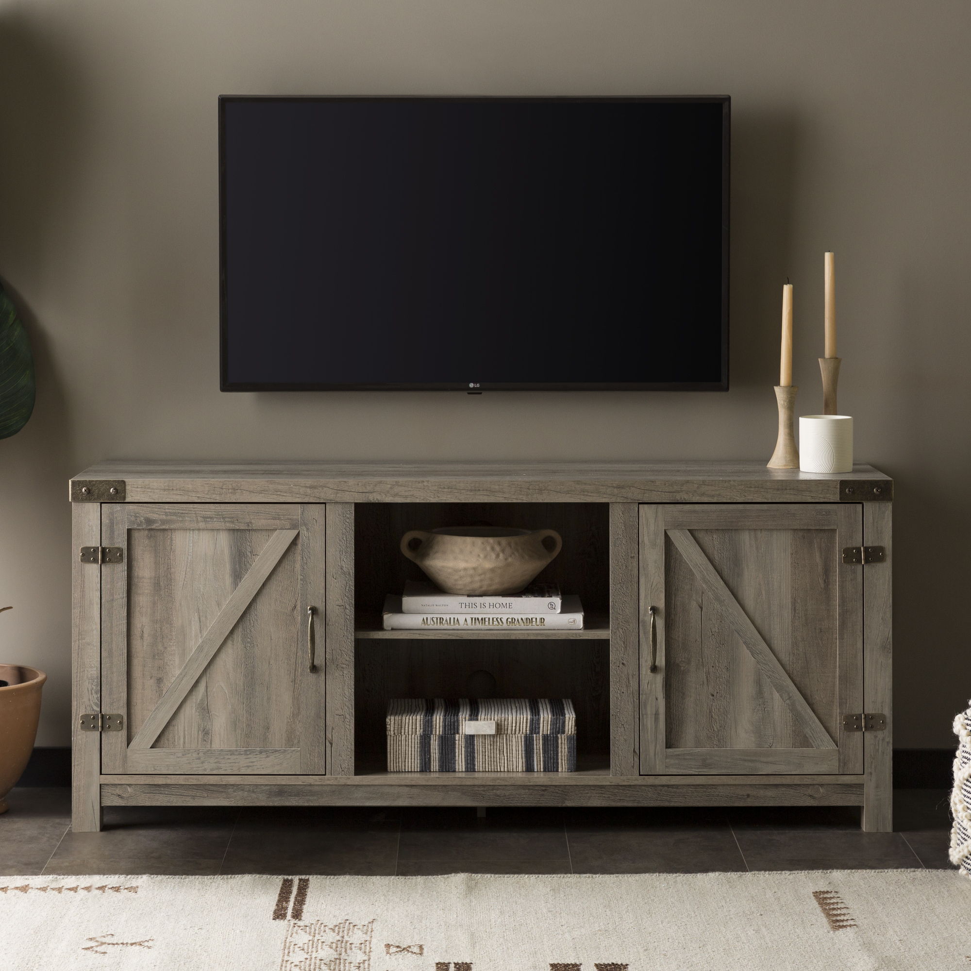 Farmhouse Barn Door TV Stand For TVs Up To 65" - Gray Wash