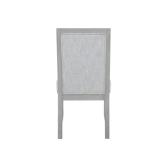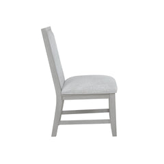 The Fiona Dining Side Chair, sold as a set of 2, blends style, comfort, and durability. Crafted from solid Rubberwood, engineered wood, and eco-friendly oak-embossed laminate, it features a Misty Gray finish that highlights the natural grain. The high backrest and plush, easy-care fabric provide excellent support and comfort for extended dining. With clean lines and a refined silhouette, this chair adds timeless charm to any dining room.