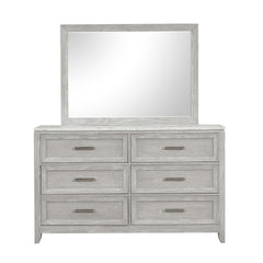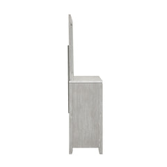 The Fiona Mirror is constructed from solid Acacia, manufactured woods, and oak veneer promising both aesthetic appeal and enduring quality. The natural wood grain is accentuated through a meticulous multi-step finish, culminating in a light, mist gray hue achieved via wire brushing and white glazing. Its classic silhouette is defined by picture frame moldings. The Fiona Mirror seamlessly adapts to various interior styles, from traditional to modern. Its expansive, low-distortion glass ensures a pristine reflection.