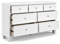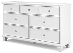 This dresser exudes timeless casual design that's ready to define your personal space. Its clean, contemporary white finish, framed drawer fronts and round metal knobs easily adapt to a variety of interiors. Featuring seven storage drawers with dovetail construction and traditional tapered feet, this piece is sure to bring elegant simplicity to your bedroom.