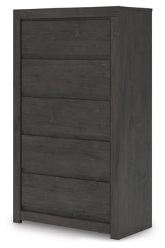 Find serene simplicity in the clean lines and dark neutral tones of this chest of drawers. It’s a sincere approach to modern elegance, giving you high style at a great value. A sleek hardware-less design creates a fuss-free look. Short on storage? This chest's smooth-gliding drawers keep clothes and clutter neatly tucked away.