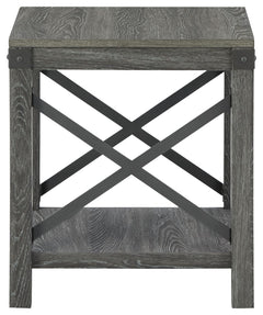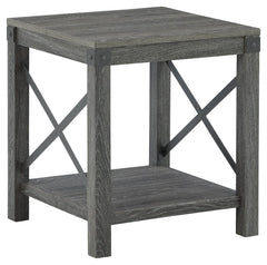 Open the door to modern farmhouse style with this square end table. The beautiful woodgrain look and classic crossbuck metal accents are a cool touch, while the lower shelf provides surface space for fashionable home accessories.