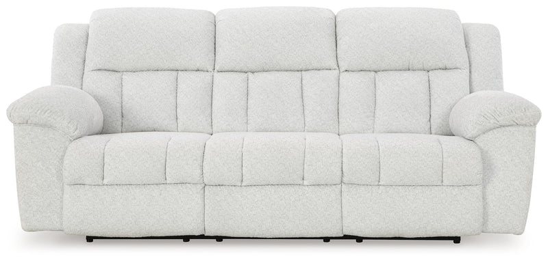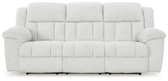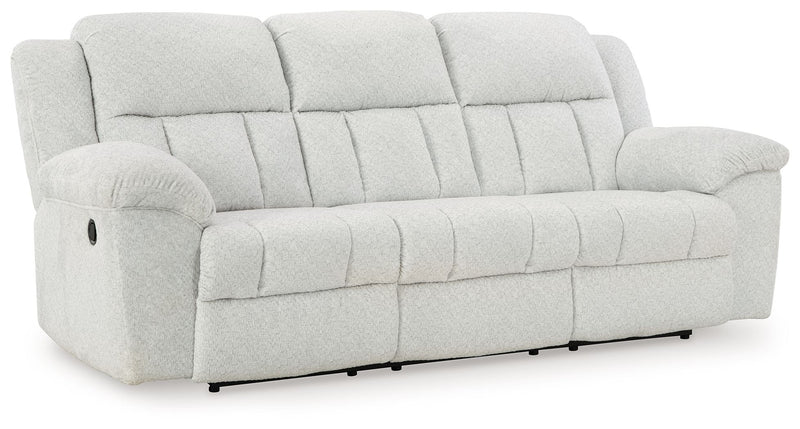 With its large-scale design, this extra-spacious reclining sofa is a masterclass in accessible style. Plush, ultra-soft upholstery keeps everyone cozy as you lounge with family or guests. In a neutral hue, it seamlessly suits different aesthetics as your taste changes. Time to relax? The sofa's pull tab reclining allows you to mellow out with ease.