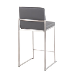 Fuji - Contemporary High Back Counter Stool (Set of 2) - Gray - Faux Leather