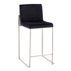 Fuji - Contemporary High Back Counter Stool (Set of 2) - Black - Velvet