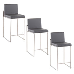 Fuji - Contemporary High Back Counter Stool (Set of 3) - Gray - Faux Leather