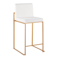 Fuji - Contemporary High Back Counter Stool (Set of 2) - White / Gold