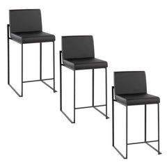 Fuji - Contemporary High Back Counter Stool (Set of 3) - Black - Faux Leather
