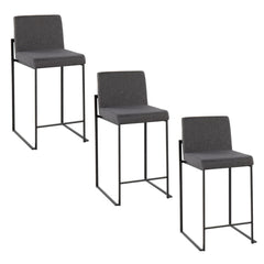 Fuji - Contemporary High Back Counter Stool (Set of 3) - Black / Gray